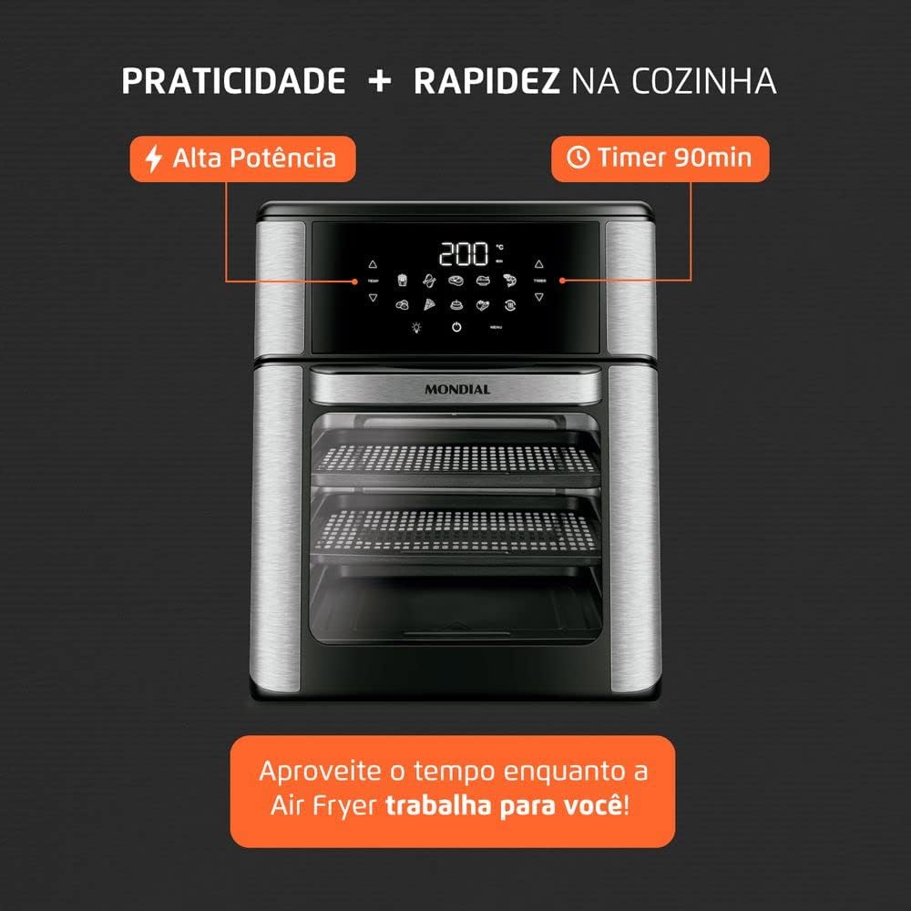 • CAPACIDADE TOTAL: 12 LITROS: Prepare grandes porções e de uma só vez. São 12 litros de capacidade: a Air Fryer Oven da Mondial é uma gigante na categoria!